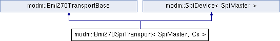 Inheritance diagram for modm::Bmi270SpiTransport< SpiMaster, Cs >: